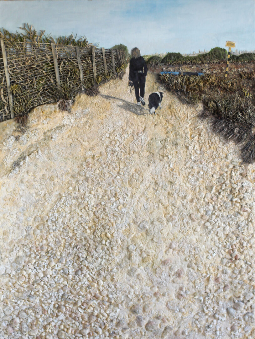 The road along the fence | 2024 | 0il paint on clay Polystyrene foam & aluminum | 167/123 cm
