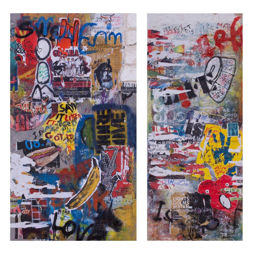 2021 , Mix media, Acrylic and spray paint on concrete and bricks, 123/66 cm , 123/47 cm