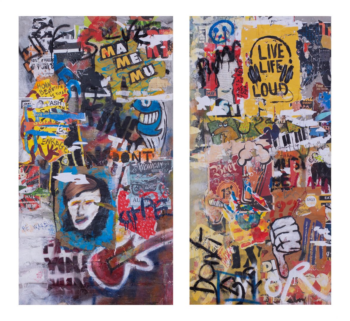 2021 , Mix media, Acrylic and spray paint on concrete and bricks, 123/64 cm , 123/61 cm