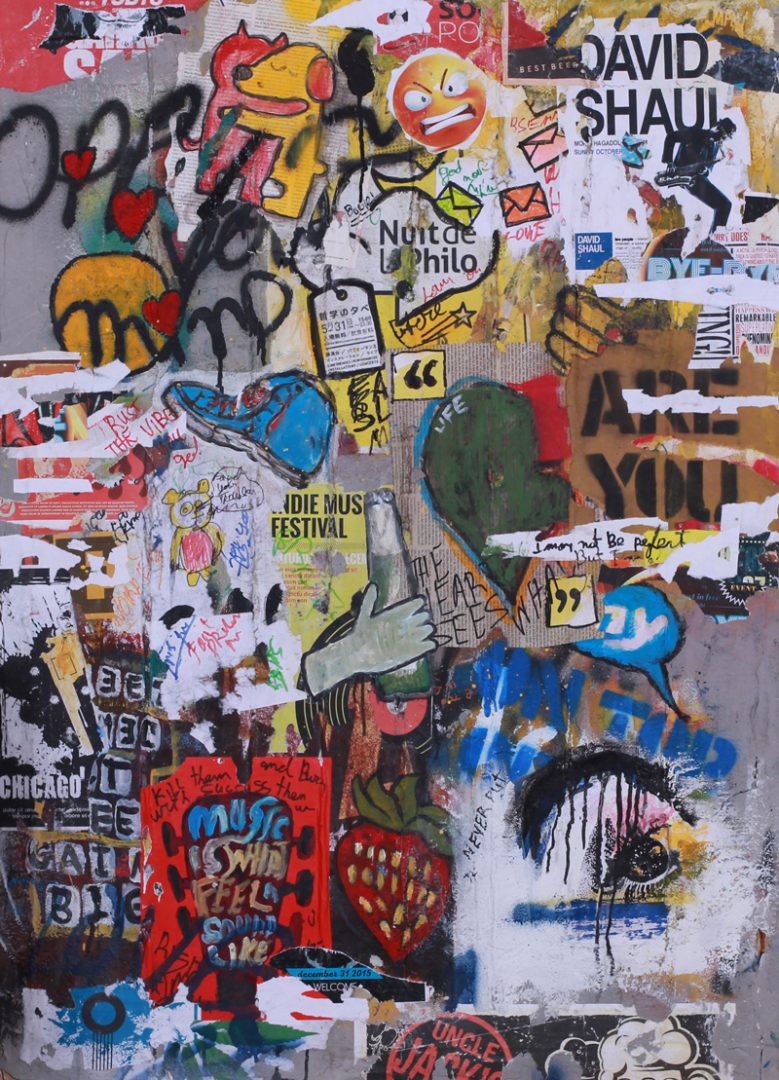 2021 , Mix media, Acrylic and spray paint on concrete, 123/87 cm