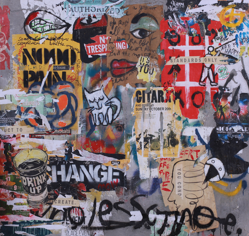 2021 , Mix media, Acrylic and spray paint on concrete, 107/101 cm